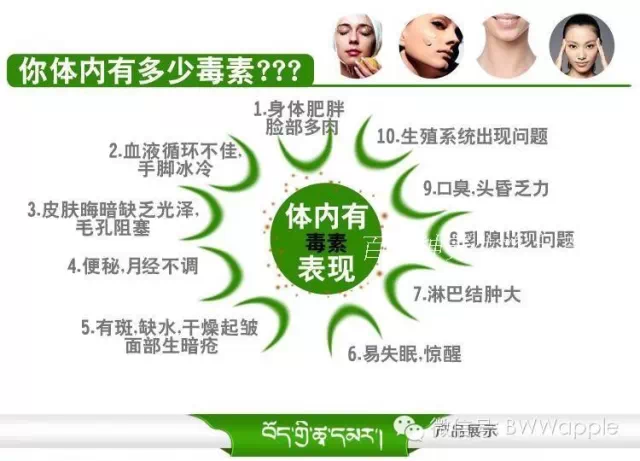 1、血毒让皮肤发黄、长斑、起皱当血毒随血液循环到达皮肤的毛细血管时,一部分会沉淀在表皮细胞上,使皮肤变黄、发锈,形成黄褐斑、老年斑等,还使肌肤变得油腻;另一部分会阻碍皮肤的营养供给,并对皮肤细胞进行攻击,使皮肤粗糙、晦暗、无光……,此外,血毒还会使人出现粉刺、毛孔变粗、口腔溃疡、口臭、上火、便秘等表现。