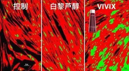 这是在美国线粒体专家杰姆博士的实验室进行的研究。图中的绿色部分代表在人体肌细胞中的线粒体。第一张图是一个健康的肌细胞中线粒体的数量,第二张图是使用了白黎芦醇后,细胞中的线粒体明显增加。使用VIVIX后,线粒体数量大幅增加,VIVIX真的很神奇。VIVIX增加了线粒体的数量和能量,延长了线粒体的寿命。